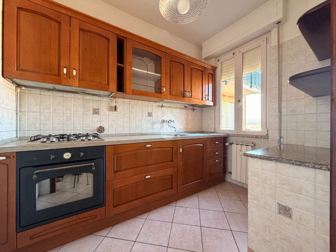 Sempre attraverso il disimpegno si accede alla cucina, spaziosa e molto luminosa, dotata di balcone e di un piccolo locale accessorio, perfetto come ulteriore spazio di servizio.