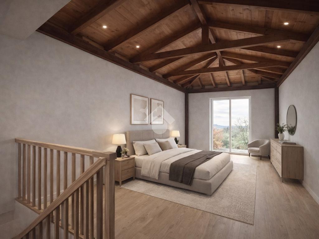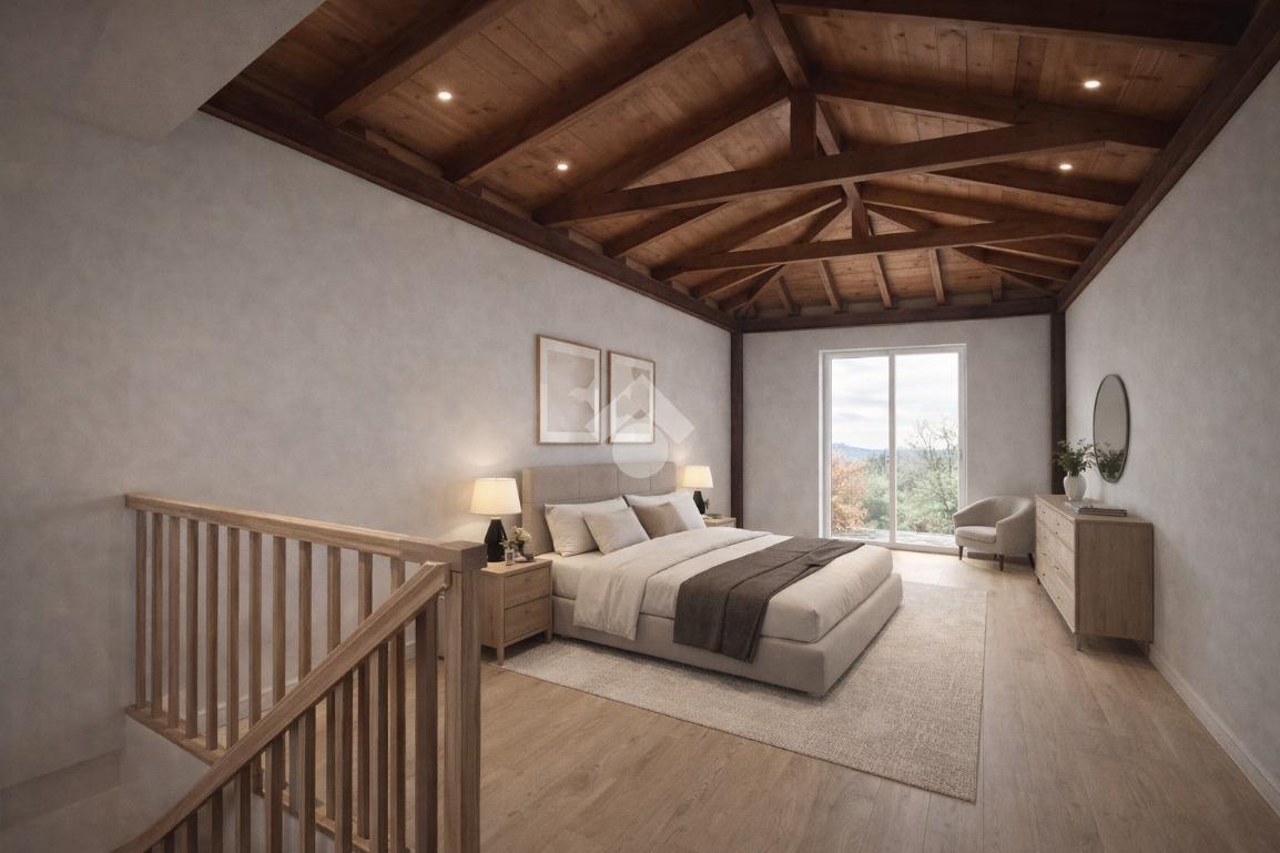 Al piano superiore è prevista una ampia camera da letto, con affaccio diretto su una grande terrazza vivibile, perfetta come spazio esterno per momenti di relax o per essere attrezzata con arredi da esterno.